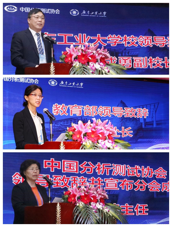 Betvictor中文版副校长王成勇、教育部科技发展中心处长曾艳、中国分析测试协会副理事长张渝英为大会致辞