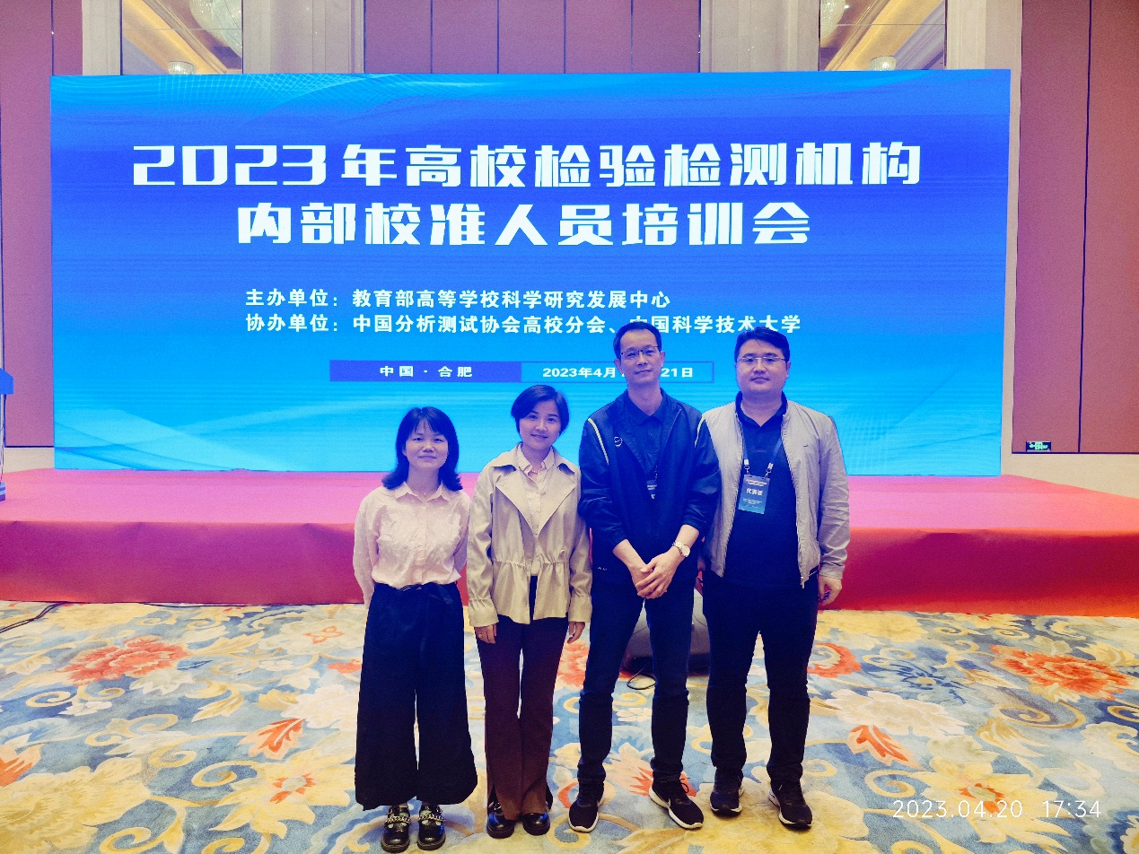 为进一步提升分测中心教师的管理水平和业务能力,为学校持续高质量推进“1+2+3”攀撑计划学科提升工程提供高水平测试服务。 2023年4月19日至4月21日,中心副主任吴其光带队,与周晓、陈瑜、李寿朋等一行四人赴合肥参加了2023年高校检验检测机构内部校准人员培训会。本次大会由教育部高等学校科学研究发展中心主办,中国分析测试学会高校分会、中国科学技术大学理化科学实验中心协办。培训班为期2天,共计300余人参加。
