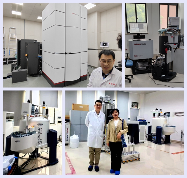 会后,中心四位老师赴中国科技大学理化科学实验中心交流学习,通过刘文齐主任、王雨松副主任、赵智副主任等的介绍,交流学习了球差电镜、核磁、质谱仪等大型仪器的运行管理经验。与电镜平台石磊老师就球差电镜的安装条件、注意事项等进行了深入的交流,与磁共振平台龚科老师就固体核磁安装条件和管理经验进行了热烈的探讨。
