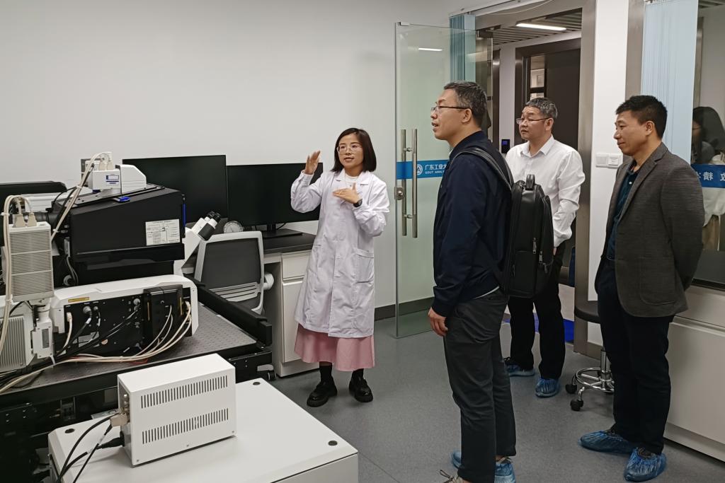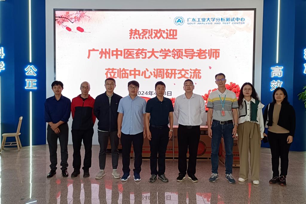 4月8日上午,广州中医药大学资产设备管理部部长谢莺燕、副部长黄慧才一行到中心就大型仪器设备开放共享管理工作进行调研交流。中心主任霍延平、副主任吴其光,学校实验室与设备管理处科长郭爱华及中心老师热情接待来访嘉宾。