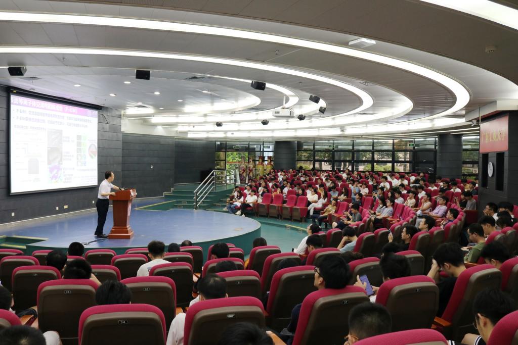李景虹院士以《表面等离子体电化学显微成像》为题做学术报告,他深入浅出地讲解了表面等离子体共振的原理,并介绍了课题组如何结合表面等离子体光学技术与电化学技术,发展了表面等离子体电阻抗成像,实现在单个细胞中进行钙离子的原位实时成像和GPCR刺激响应研究;开发了电化学电流成像技术,用于单个纳米颗粒的电催化活性成像;发现了表面等离子体的积分成像原理,提高灵敏度至单个生物大分子的免标记成像,并提出了超分辨成像的方法。在座师生纷纷举手围绕报告内容就自己所关心的情况进行踊跃提问,与李院士展开了热烈的探讨,进一步深入了解了电化学显微成像技术的发展,并领悟了其在界面反应过程研究、能源材料设计、药物筛选与研发等的重大意义。
