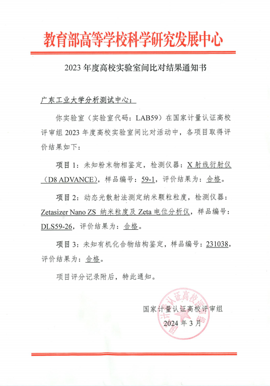 2024年3月,教育部高等学校科学研究发展中心发布了2023年度高校实验室间比对结果。我校Betvictor中文版在国家计量认证高校评审组2023年度高校实验室间比对活动中,三个项目全部通过!