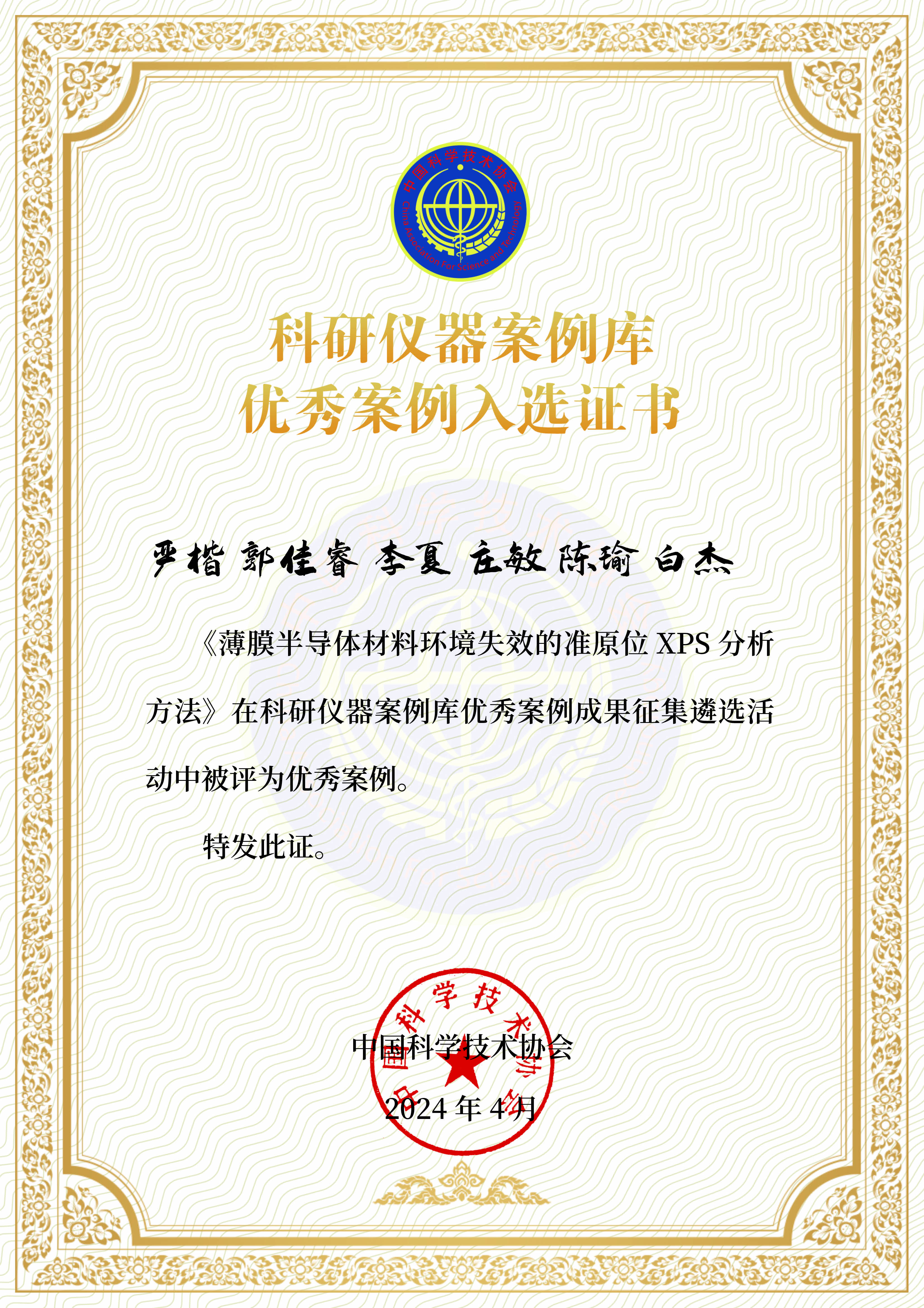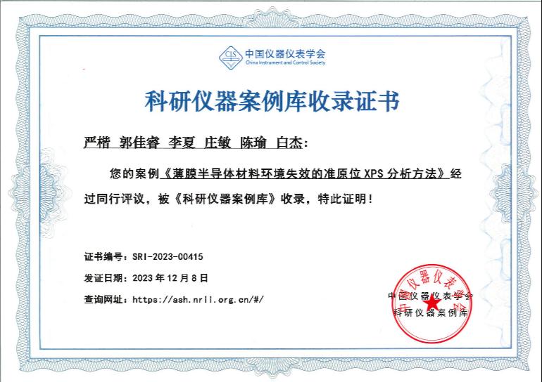 1.《薄膜半导体材料环境失效的准原位XPS分析方法》
