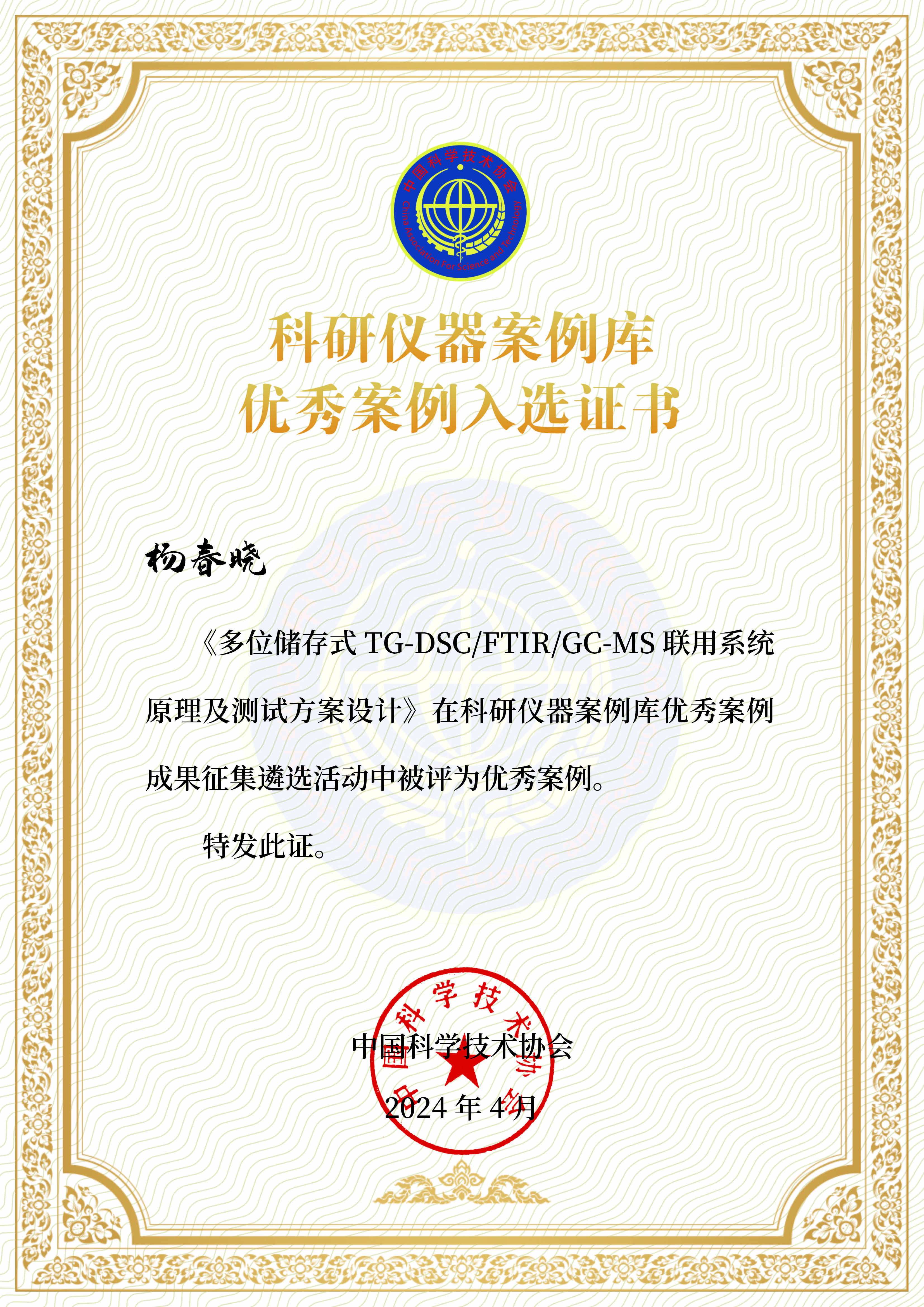 近日,在第二十七届高校Betvictor中文版研究会年会暨第三届中国分析测试协会高校分析测试分会年会中,举行2023年度优秀科研仪器案例入选证书颁发仪式。我校Betvictor中文版严楷老师、杨春晓老师投稿案例双双获评“科研仪器案例库优秀案例”,被《科研仪器案例库》收录。