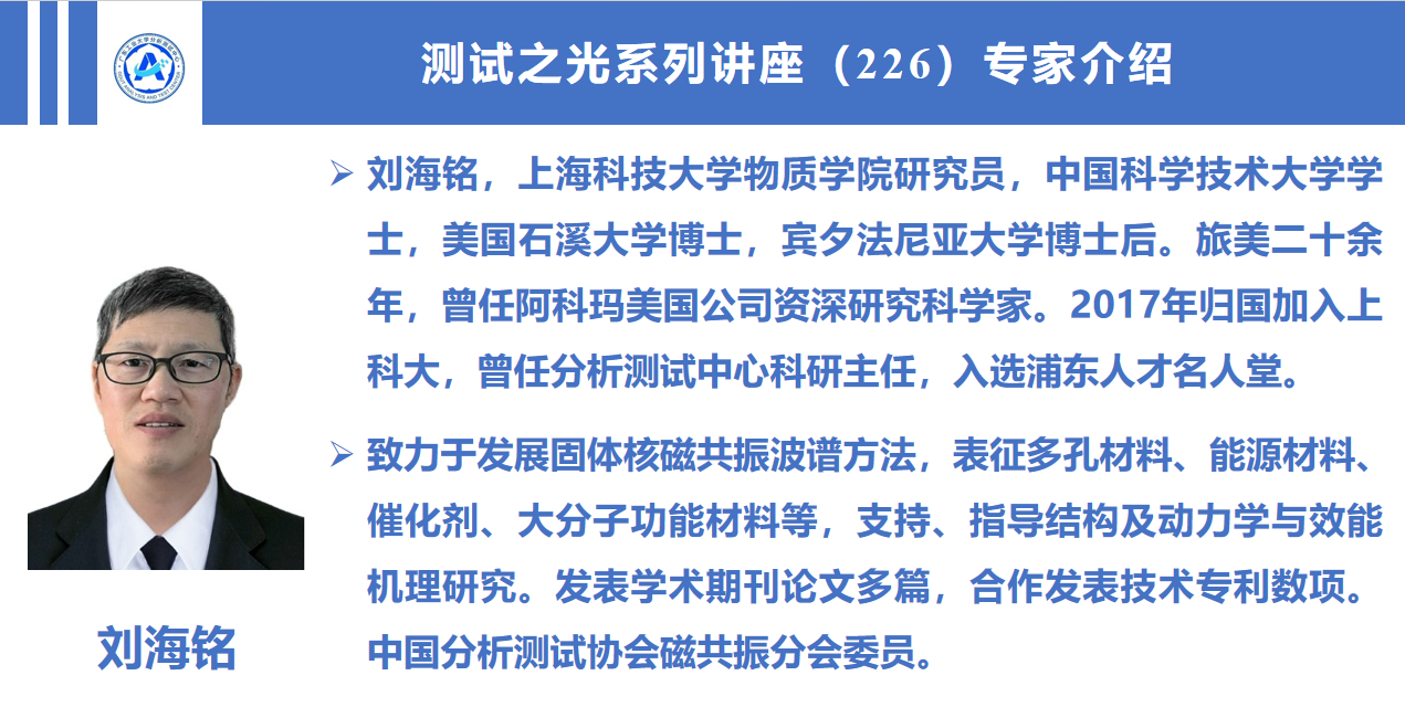 为更好地服务广大师生用户,提升大家对固体核磁技术理解及应用Betvictor中文版邀请上海科技大学刘海铭研究员进行“固体核磁共振波谱表征材料精细结构与动力学专题报告欢迎大家关注和参加。具体通知如下: