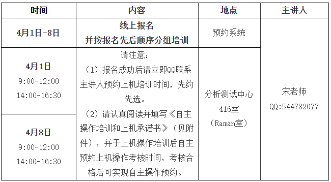 为更好的满足广大师生的测试需求,Betvictor中文版光谱分析室将于4月组织举办显微共焦拉曼光谱仪上机操作培训。具体安排如下: