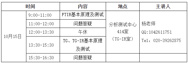 通过理论、上机操作以及数据分析,了解TG、FTIR、TG-IR测试原理、步骤、数据分析应用等,达到自主设计测试方案、分析数据的目的。