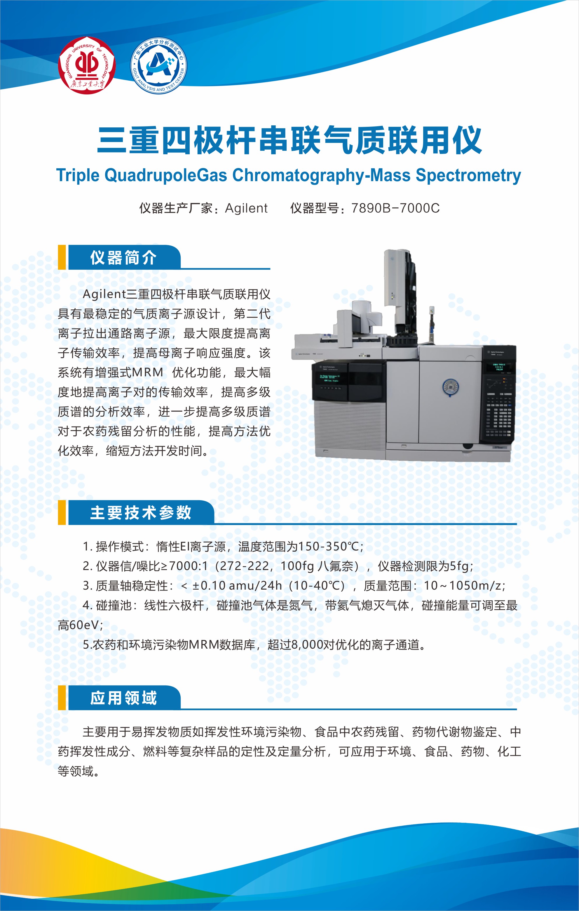2、对于定性样品,待测化合物浓度约在10mg/L级别。对于定量样品,需自行准备标准品溶液;