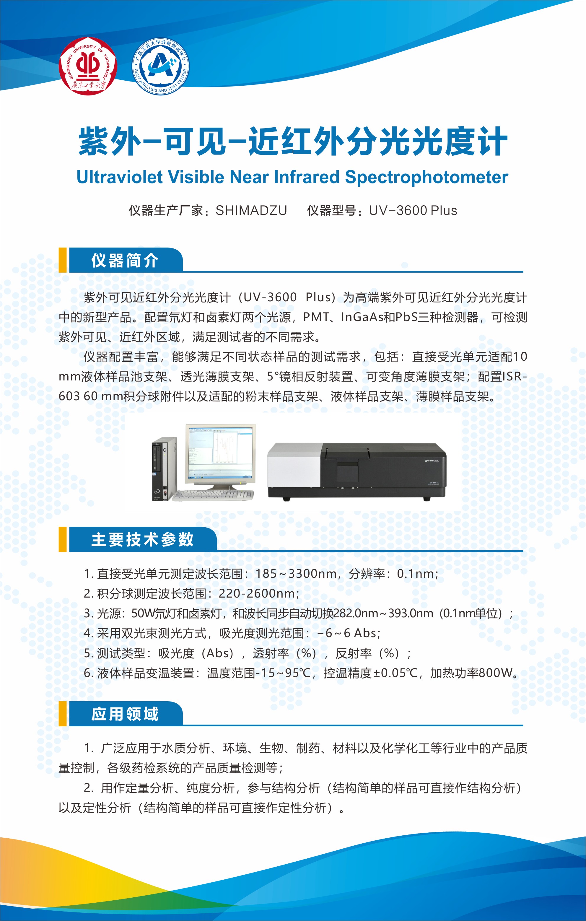 均一稳定的溶液,透光薄膜,镜面样品---选择直接法,每周一或周四测试: