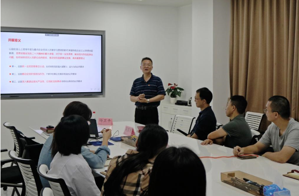 吴其光代表党支部感谢杨卫平老师的精彩授课,他强调支部所有党员要深刻认识开展主题教育的重大意义、丰富内涵和实践要求,加强政治理论学习,不断提高政治判断力、政治领悟力、政治执行力,切实把主题教育的成果转化为推动工作的强大力量,为学校持续高质量推进“1+2+3”攀撑计划学科提升工程贡献力量。